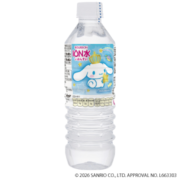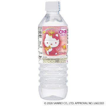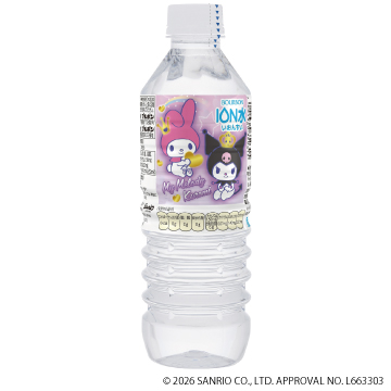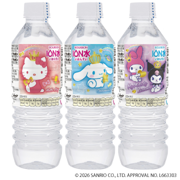 ハローキティ、シナモロール、マイメロディ・クロミがデザインされたアルカリイオン水です。(pH値8.8~9.2)
