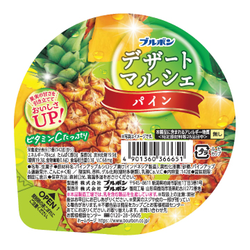 ゼリーをより甘くおいしくリニューアルしました。みずみずしいゼリーにパイン果肉を合わせた定番デザートです。
