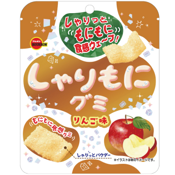 甘酸っぱしゃりっとパウダーと、もちむにグミの”しゃりもに食感 ”が楽しいりんご味のグミです。