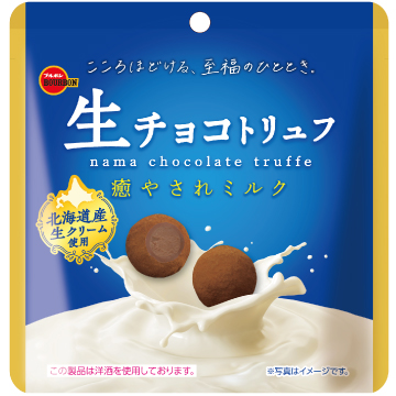 ミルクチョコレートの中に北海道産生クリームを使用した生チョコレートを閉じ込めました。