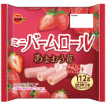 くるっと巻きあげたミニサイズのロールケーキを、甘酸っぱいあまおう苺クリームで包み込みました。