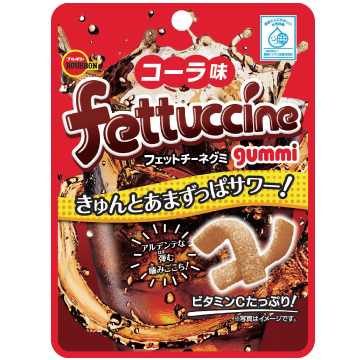 カベルネソーヴィニヨン味とブラッドオレンジ味が同時に味わえるフェットチーネグミです。