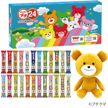 プチクマ山吹色ぬいぐるみ+プチ24本詰合せBOXがセットになった、今だけの限定商品です!